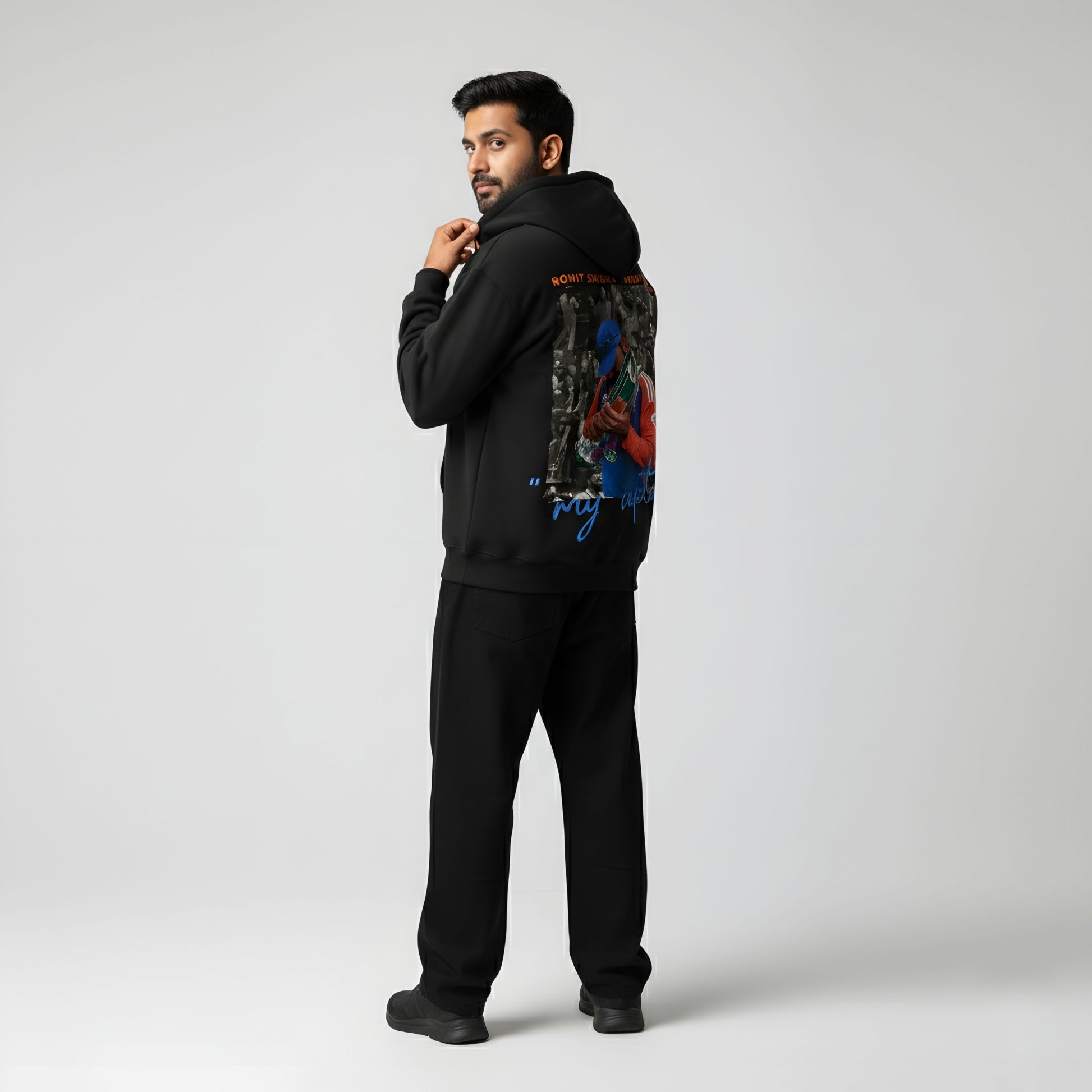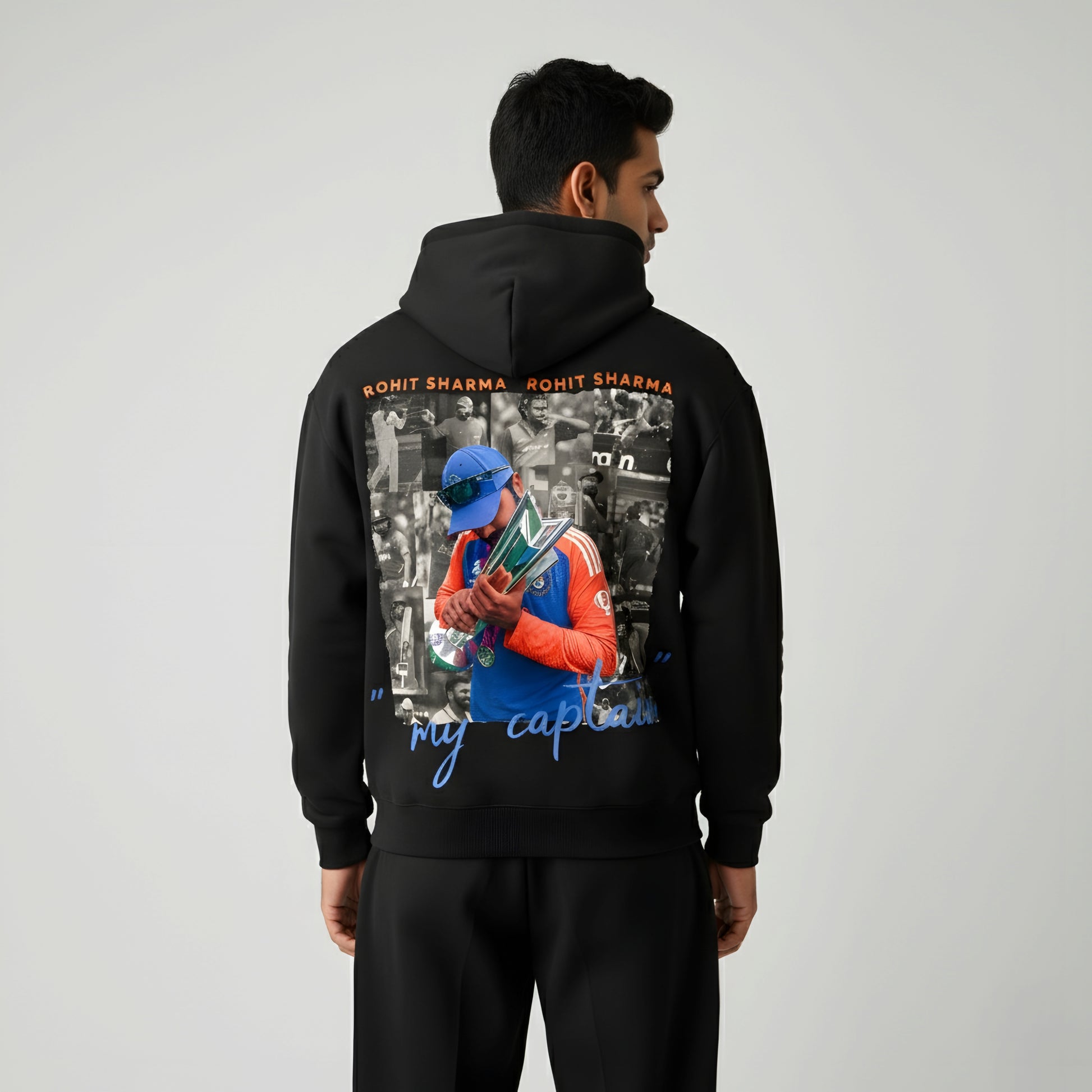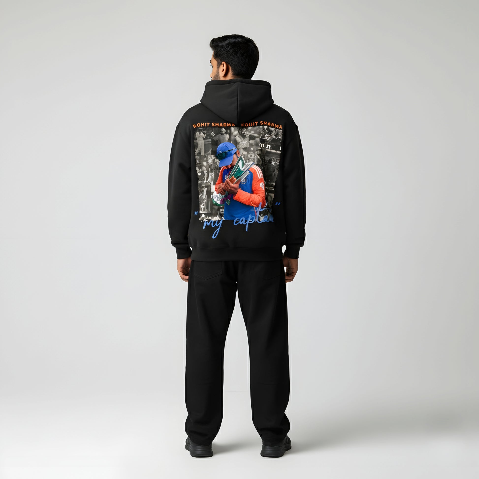 Celebrate the spirit of cricket and streetwear style with the Rohit Sharma “45” Signature Tee. Crafted from ultra-soft, high-quality cotton, this premium white t-shirt features the iconic “45” and Rohit Sharma’s signature printed in bold blue and orange — representing confidence, energy, and legacy.